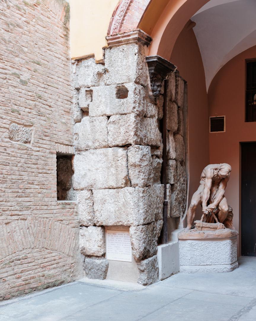 Le origini di questo edificio sono molto antiche e la sua configurazione risente delle preesistenze illustri, ovvero la Rocca Imperiale che viene distrutta a furor di popolo nel 1115. All’inizio del XIV secolo prende forma un palazzo di dimensioni ragguardevoli voluto dal banchiere Alberto Conoscenti. Il portico risente delle trasformazioni avvenute nel tempo presentando fornici di forme diverse e vari tipi di decorazioni.A testimonianza dell’antichità del luogo, nel cortile è visibile un frammento delle mura di selenite che risalgono al V-VI secolo d.C.