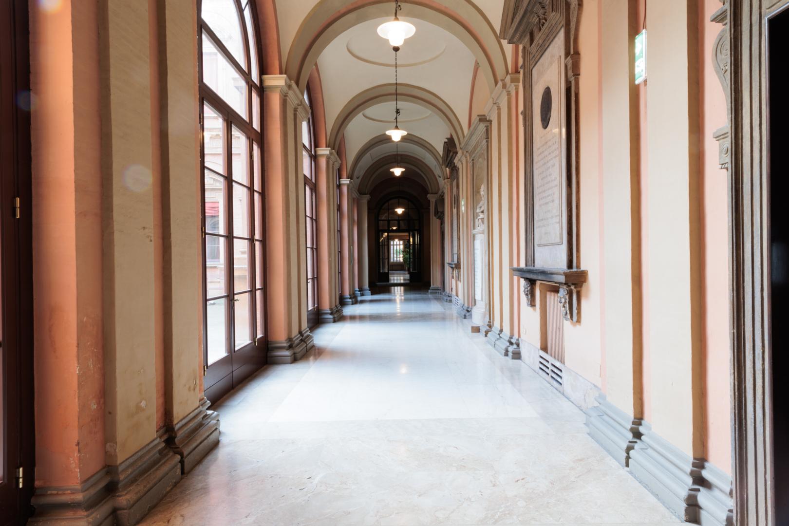 La svolta nella destinazione d’uso si ha nel 1712 quando il palazzo, venduto dalla famiglia, diventa la sede dell’Accademia delle Scienze e si arricchisce di una imponente biblioteca opera di Carlo Francesco Dotti.