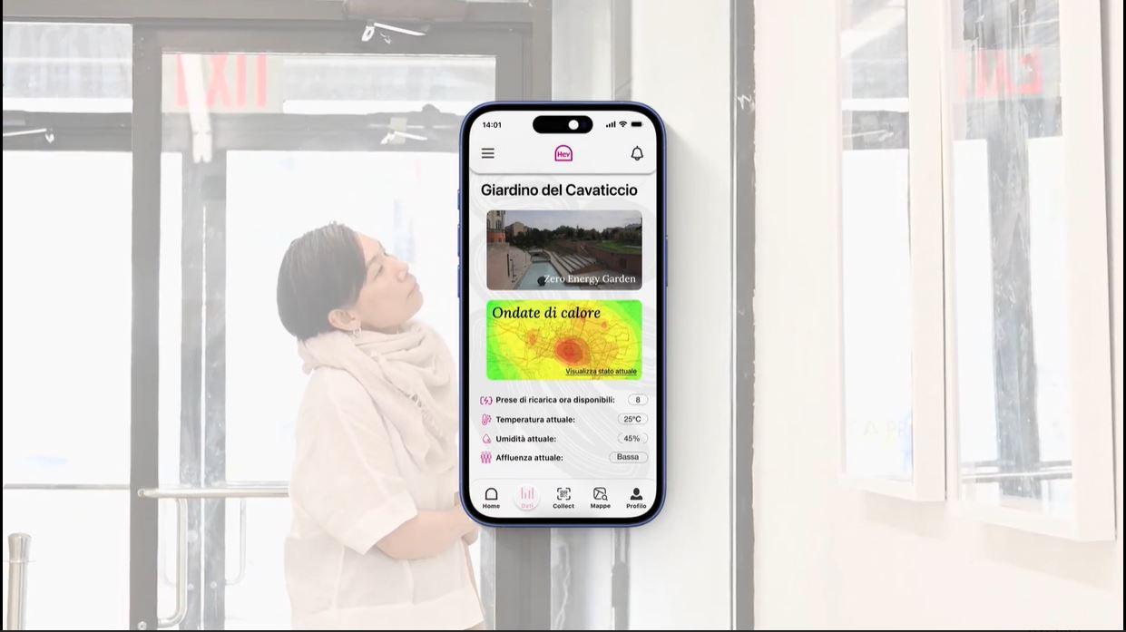 videata cellulare che mostra un'app innovativa per monitorare i rifugi climatici a Bologna