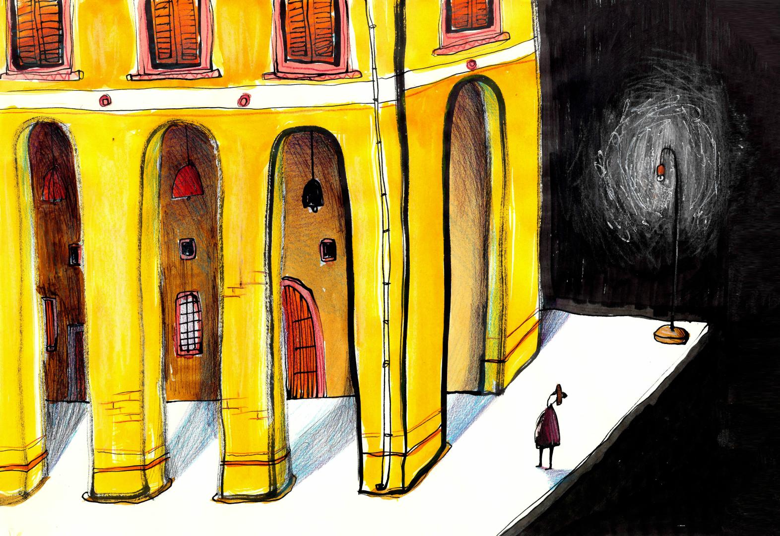 Il portico è ritmo e ripetizione, a volte può essere noioso disegnarlo, lei invece ha trovato la